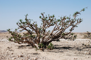 My dear friend, Trygve Harris, who lives in Oman a good part of the year, is, in my opinion, and by the opinion of many others, one of the world's experts on frankincense. A few days ago, upon hearing of my purchase of a tiny B. sacra sapling, Trygve began to send me LOTS of great pictures of frankincense trees in Oman. When they arrived, I urged her to add a SEARCH function to her amazing blog, and she did, and I encourage you to go to AbsoluteTrygve and have a good look at her posts on frankincense. She senses the air and the rain and the soil they grow in like a spiritual earth mother of frankincense, and she balances out the problems and opportunities of this tree like no one I know. Oh, plus, she makes frankincense ice cream and now has a shop opening in Salalah to sell the yummy dessert. Wallah! (I've picked up Trygve's often use of this Arabic word, which basically means "I swear to God".)